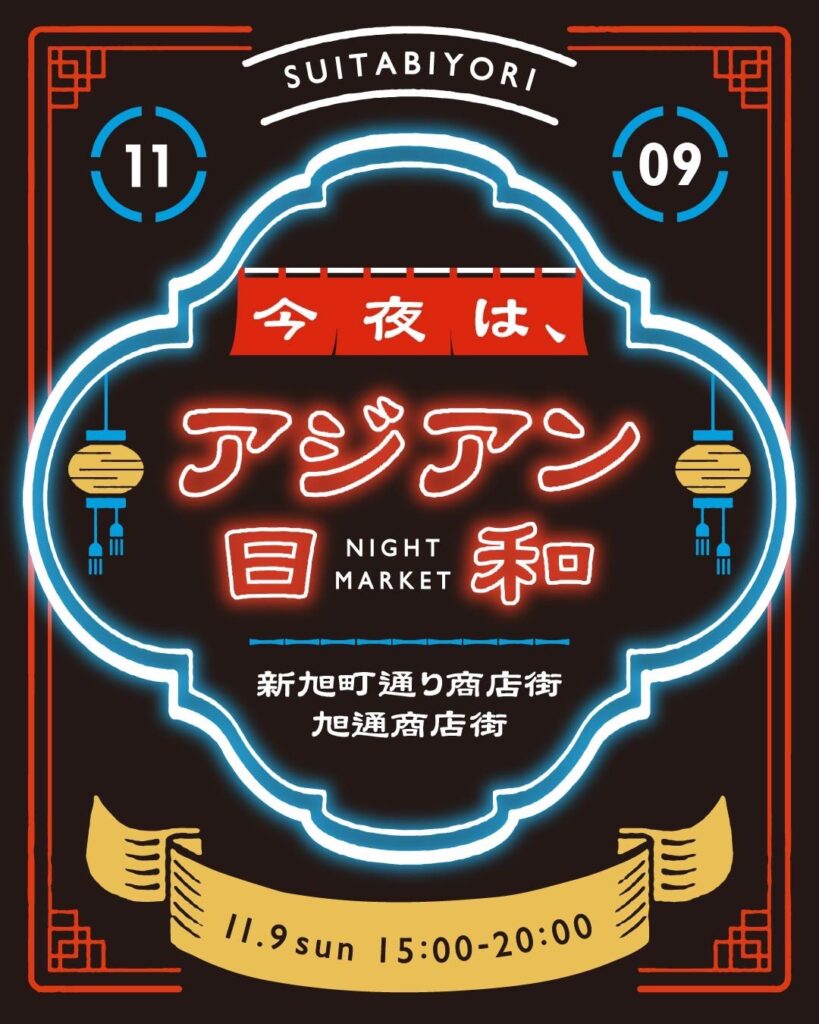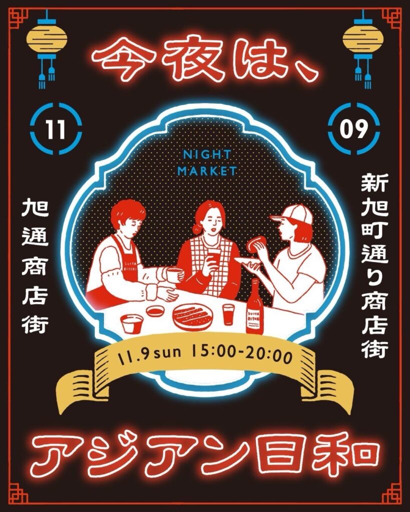 11月9日の日曜日に、当商店街と旭通商店街で、 「アジアン日和」と題した、アジアンテイストの屋台が集まる イベントが開催されます。 開催時間は15:00~20:00です。 子ども縁日やワークショップも同時に開催されるそうで、 子どもから大人まで楽しめそうです。 アジアンフードの味にご興味がある方は、ぜひのぞいてみませんか?