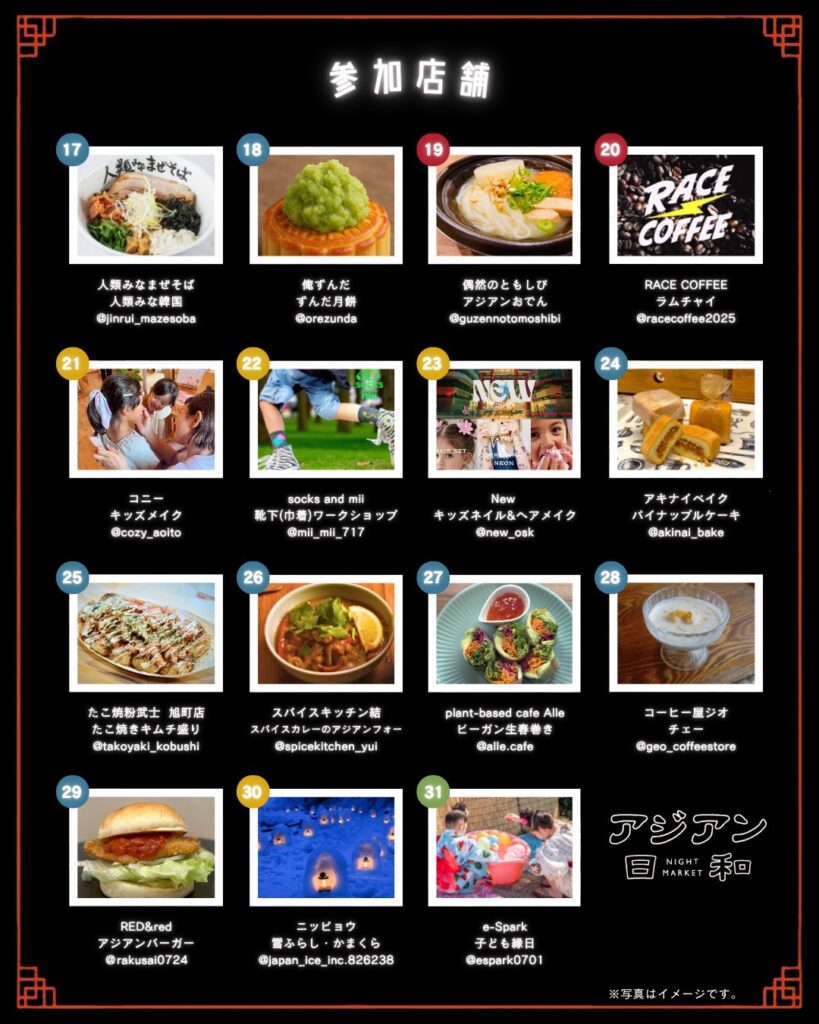 NEWS11月9日の日曜日に、当商店街と旭通商店街で、 「アジアン日和」と題した、アジアンテイストの屋台が集まる イベントが開催されます。 開催時間は15:00~20:00です。 子ども縁日やワークショップも同時に開催されるそうで、 子どもから大人まで楽しめそうです。 アジアンフードの味にご興味がある方は、ぜひのぞいてみませんか?
