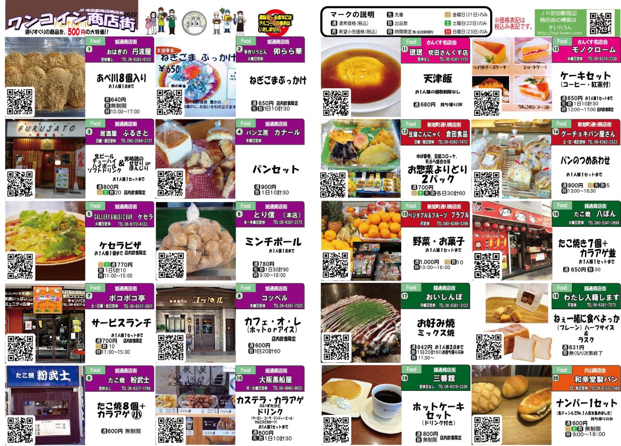 2022年10月21日(金)~23日(日)にワンコイン商店街を開催します。 すいたオータムフェスタ夢広場と同時開催ですので、ぜひ商店街にお越しください。 ※次回のワンコインのチラシの日程に誤りがありました。 正しくは2023年2月24(金)・25日(土)・26日(日)です。 お詫びして訂正させていただきます。