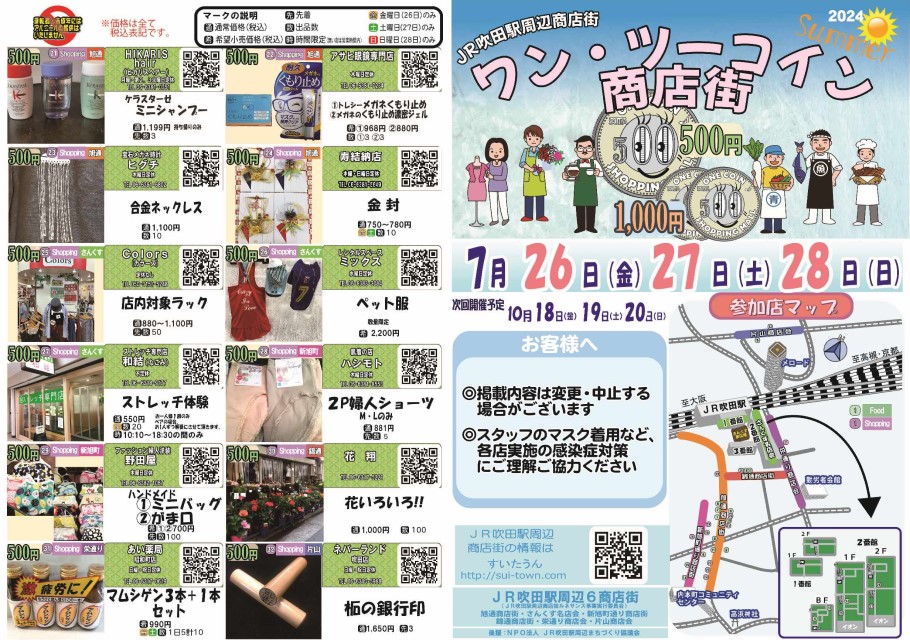 2024年7月26日(金)~28日(日)にワン・ツーコイン商店街を開催します。