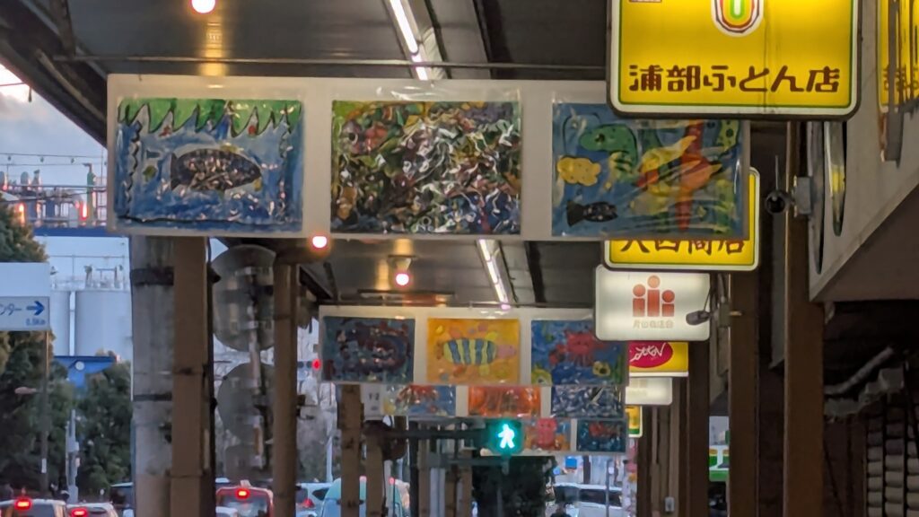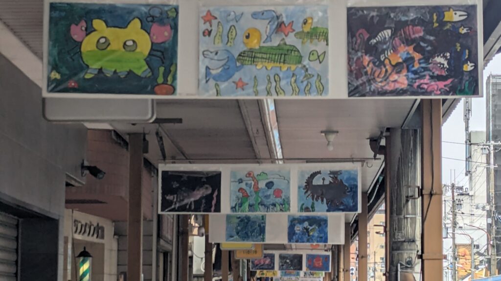 作品136点を片山商店街のアーケードに2月末日まで展示しています。